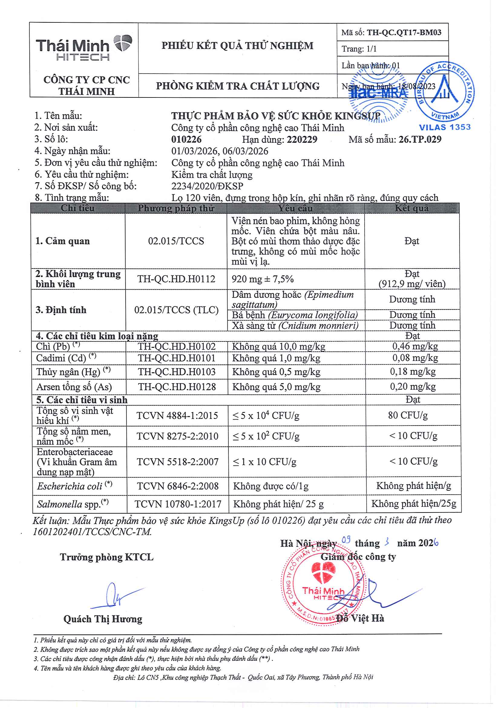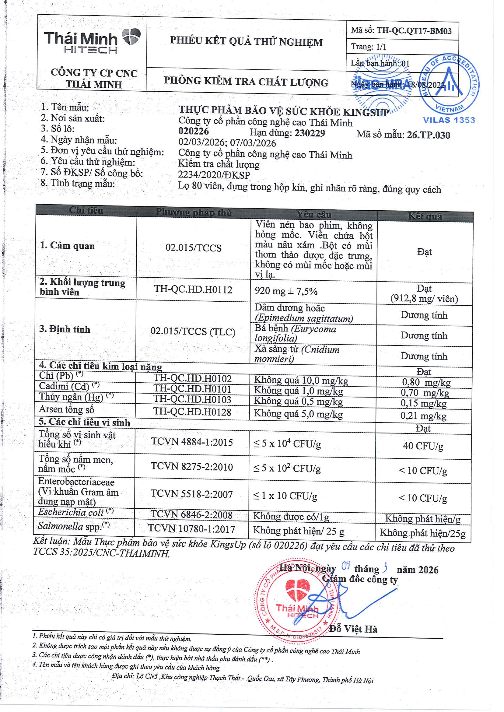 • Kết quả "Đạt" hoặc "Không phát hiện" là tốt, cho thấy sản phẩm an toàn, không nhiễm khuẩn hay kim loại nặng.