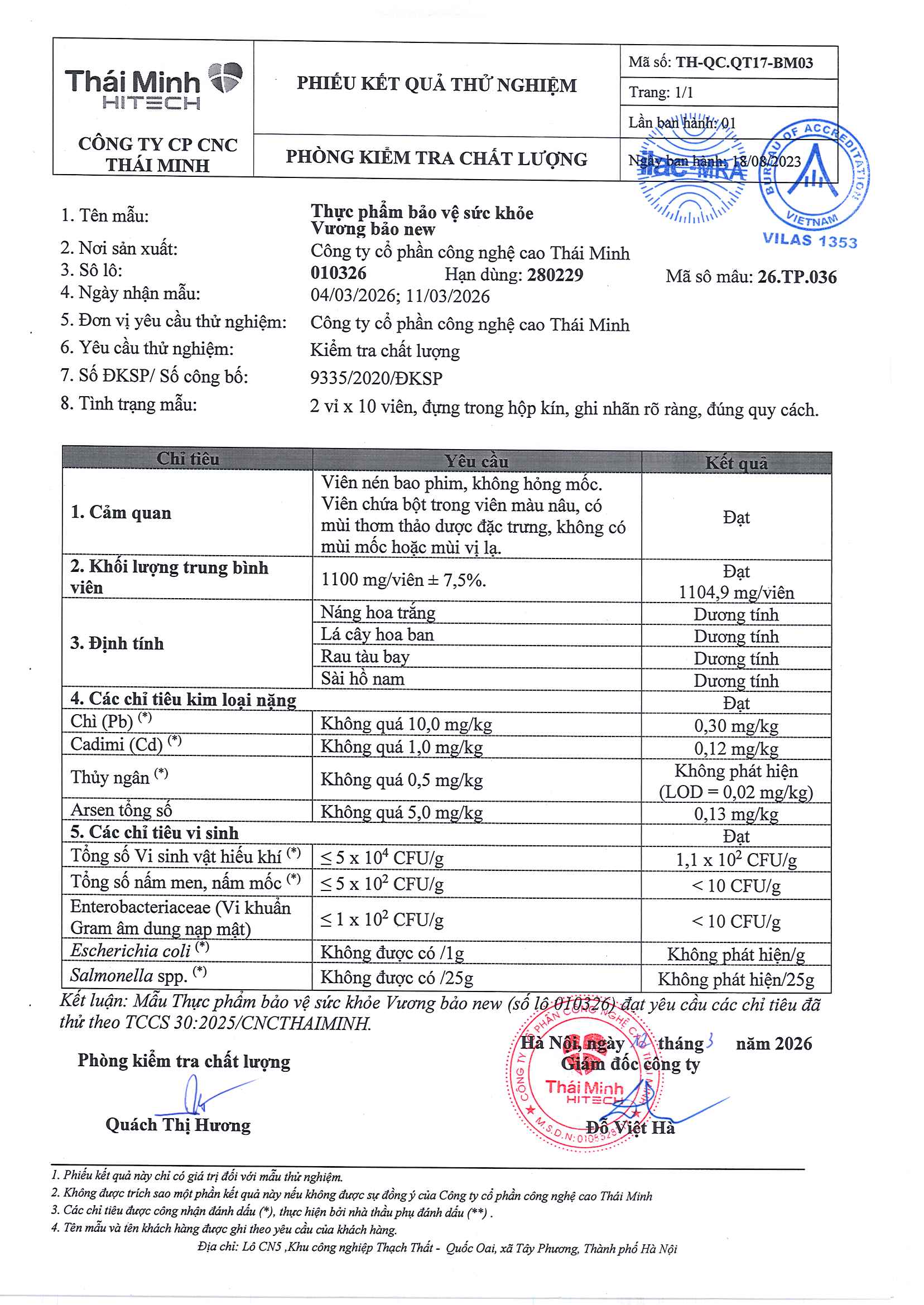 Dược phẩm Thái Minh cam kết đặt sức khỏe người dùng lên hàng đầu. Việc công bố minh bạch kết quả kiểm nghiệm không chỉ là trách nhiệm mà còn là cam kết về chất lượng. Thông qua việc chia sẻ kết quả kiểm nghiệm từng lô sản xuất, chúng tôi mong muốn người tiêu dùng: