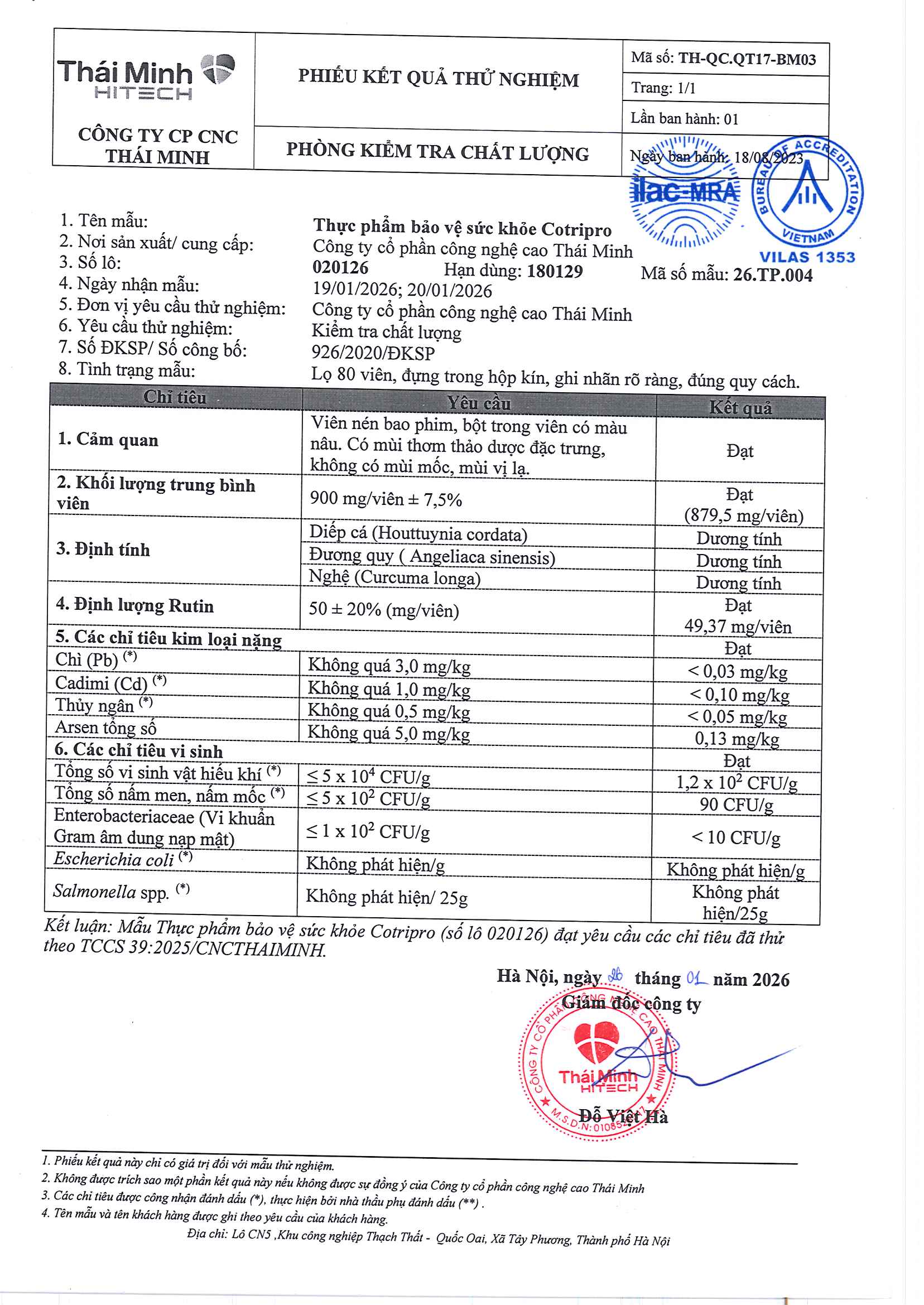 Dược phẩm Thái Minh cam kết đặt sức khỏe người dùng lên hàng đầu. Việc công bố minh bạch kết quả kiểm nghiệm không chỉ là trách nhiệm mà còn là cam kết về chất lượng. Thông qua việc chia sẻ kết quả kiểm nghiệm từng lô sản xuất, chúng tôi mong muốn người tiêu dùng: