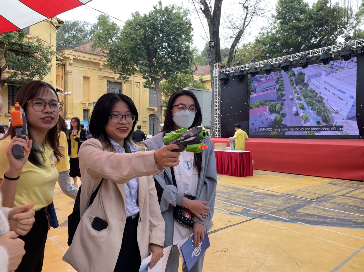 Tại sự kiện, gian hàng Dược phẩm Thái Minh thu hút đông đảo sinh viên đến tìm hiểu thông tin tuyển dụng và chơi game tương tác.