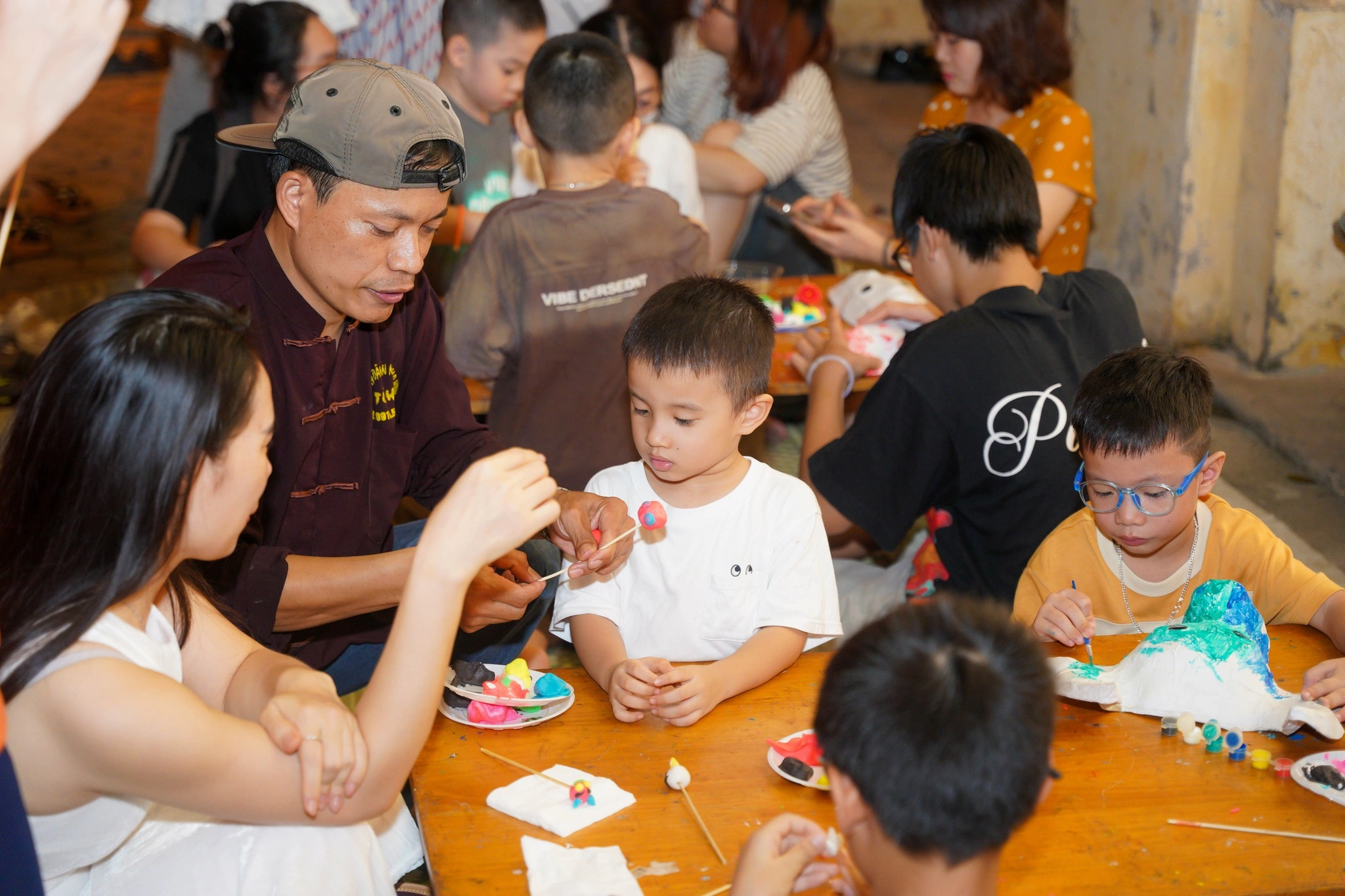 Từ những tiếng trống lân giòn giã vang lên mở màn, đến giây phút cả gia đình cùng rước đèn, phá cỗ, trông trăng, mọi khoảnh khắc đều ngập tràn niềm hân hoan. Các bé được thỏa sức sáng tạo trong workshop nặn tò he, vẽ mặt nạ giấy bồi cùng nghệ nhân dân gian, thưởng thức múa rối nước truyền thống, và dạo bước trong khu trưng bày Trung thu cổ truyền – nơi tái hiện hình ảnh của những mùa trăng xưa.